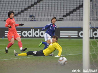 此后韩国队士气大振,1分钟后替补上场的前卫景加颖禁区外左脚大力低射被日本队门将山乡望扑出底线。第39分钟后卫金有美门前抢射被日本后卫挡出底线。韩国队在下半场有高于对手约2倍的7次射门,但始终未能再形成威胁攻势,最终未能挽回败局。