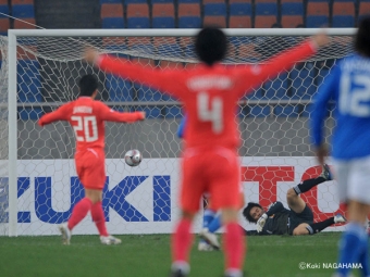 この試合でどちらかが勝てばそのチームが優勝となる“決勝戦”は、互いに試合開始から積極的に相手ゴールへと迫っていった。3分、韓国はLEE Jong Minの右クロスからKIM Nam Il主将が右足でシュートを放つ。対する日本は局面をショートパスで打開しながら敵陣へと侵入。しかし、その中で先に試合を動かしたのは韓国だった。15分、CHO Won Heeからのパスを左サイドで受けたPARK Won Jaeが中央に絶妙な折り返し。ペナルティエリア内で待ち構えていたYEOM Ki Hunが得意の左足を振りぬくとボールはゴール左隅へ決まった。韓国が先制。